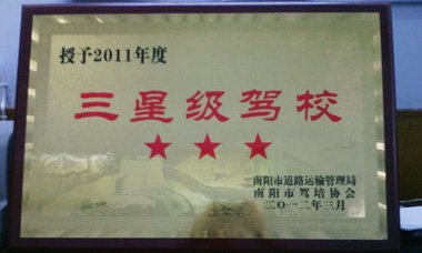 ??????? 2012年3月,順行駕培有限公司被南陽市道路運輸管理局和市駕培行業(yè)協(xié)會聯(lián)合授予“三星級駕?!狈Q號。