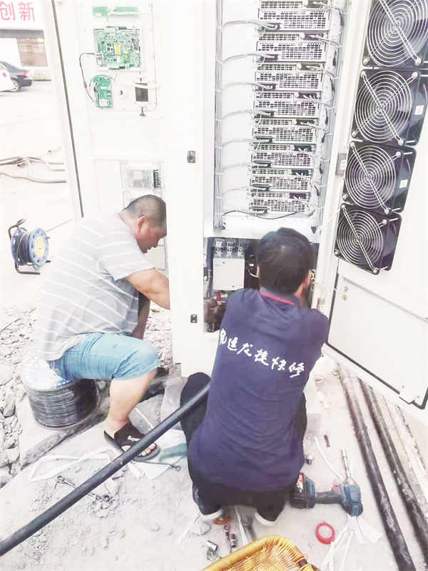 7月4日至5日,新能源公司、龍捷快修公司派出技術(shù)骨干,由負(fù)責(zé)同志帶隊(duì),到南召分公司對(duì)修理廠充電站進(jìn)行擴(kuò)容,增加3臺(tái)200kw充電樁,變壓器由630kvA擴(kuò)容至1000kvA。工作人員冒高溫酷暑,爬高鉆低,鋪設(shè)電纜,安裝充電樁,至5日晚,充電樁通電調(diào)試全部正常。調(diào)換下來(lái)的原630kvA變壓器將安裝到桐柏老汽車站使用。