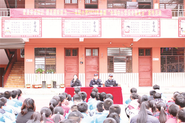 每年3月最后一周星期一為全國(guó)中小學(xué)生安全教育日。今年中小學(xué)生安全教育日活動(dòng)當(dāng)天,白警官在宣講中結(jié)合小學(xué)生的特點(diǎn),用一個(gè)個(gè)具體的事例,深入淺出地講述什么是違法與犯罪,什么事應(yīng)該做、什么事不該做,怎樣才能使自己成為一個(gè)遵紀(jì)守法的合格小學(xué)生,使同學(xué)們深受教育。白警官希望同學(xué)們不斷加強(qiáng)公民思想道德修養(yǎng),提高安全防范意識(shí),增強(qiáng)法制安全意識(shí),明白知法懂法守法護(hù)法對(duì)健康成長(zhǎng)的重要性,學(xué)會(huì)運(yùn)用法律知識(shí)保護(hù)自己。(牛雪麗)
