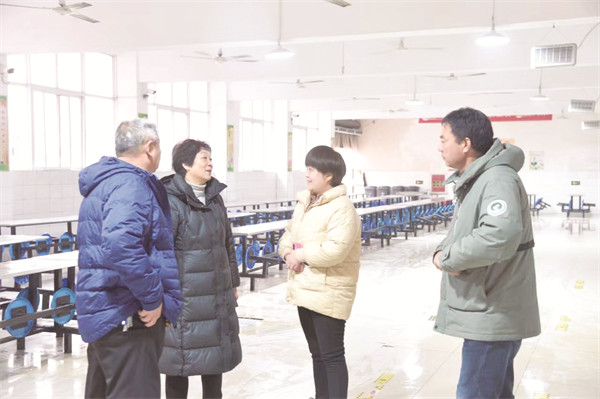 圖為宛城區(qū)政協(xié)副主席馬曉良(左二)到書院中學(xué)檢查食品安全。