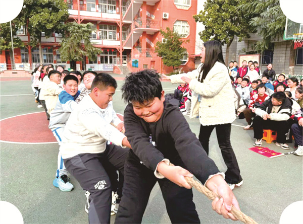 2月27日,書院完全學(xué)校小學(xué)部組織舉辦拔河比賽。各班選拔精干力量組隊參賽,在吶喊聲、助威聲交織的氣氛中,參賽學(xué)生齊心協(xié)力為班級榮譽而戰(zhàn)。(牛雪麗)