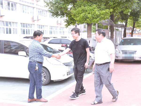 8月8日上午,難得的一個涼爽宜人的日子,浙江大學(xué)研究生李杰懷著激動的心情,回到了闊別八年的母校——南陽市書院中學(xué)看望恩師,見到了陪伴他三年的班主任張成杰老師。楊書祥、路俊東、張豐斌、任玉柯等學(xué)校領(lǐng)導(dǎo)參加交流活動。