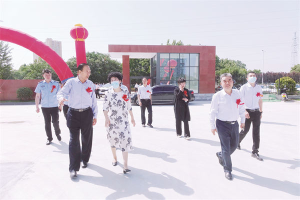 圖為與會領(lǐng)導(dǎo)到新成立的交通物流學(xué)院參觀指導(dǎo)。副市長阿穎(左前二),市政府副秘書長李芳(右三),南陽農(nóng)業(yè)職業(yè)學(xué)院黨委書記張士君(右二),集團(tuán)公司董事長、黨委書記、總經(jīng)理胡逸云(左前一)